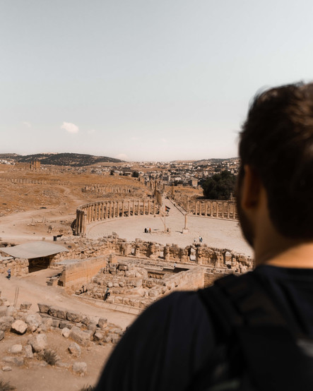 Na een heerlijk nachtje slapen is het tijd voor een ontbijt. Robert loopt naar beneden om te vragen hoe het werkt. “U moet bellen vanuit uw kamer meneer Robert” zegt de host. Dus Robert gaat terug naar boven en belt naar het genoemde nummer om vervolgens weer dezelfde man aan de lijn te krijgen (haha). “U kan alles bestellen meneer” zegt de man vriendelijk. “Alles?” Robert kijkt mij vragend aan. De eerste drie opties die we noemden hadden ze niet op voorraad en bij de vierde optie kregen we het gevoel alsof ie snel voor ons naar de dichtstbijzijnde supermarkt gerend is. We kunnen er wel om lachen, maar hopen tegelijkertijd niet dat dit elke dag zo zal gaan. We rijden naar Jerash. Dit is de eerste activiteit die we op ons programma hebben staan. Jerash is een gebied vlak buiten Amman vol met tempels en pleinen. Deze stad werd herontdekt door een Duitse archeoloog (eind 19de eeuw). Hoe bizar is dat? Een hele stad bedolven onder zand en plotseling stuit je erop!