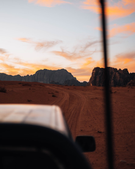 We hebben bij Wadi Rum weer geboekt bij een kamp en net als bij Dana worden we vanaf een specifieke plek opgehaald om de woestijn in te gaan. Onze koffers worden ingeladen en wij mogen samen met een ander Nederlands stel achterop de open jeep zitten. We rijden een stuk de woestijn in totdat we plotseling een aantal tenten zien verschijnen. Wij hebben ervoor gekozen om de eerste nacht in een luxe mars tent te zitten, omdat we vanuit bed het sterrenstelsel willen bewonderen. Bij aankomst begint de zon al redelijk te zakken en wij besluiten een aantal rotsen op te klimmen voor mooi uitzicht tijdens zonsondergang. Note: dit moet je zeker weten doen! De zonsondergang in de woestijn is namelijk next level!!